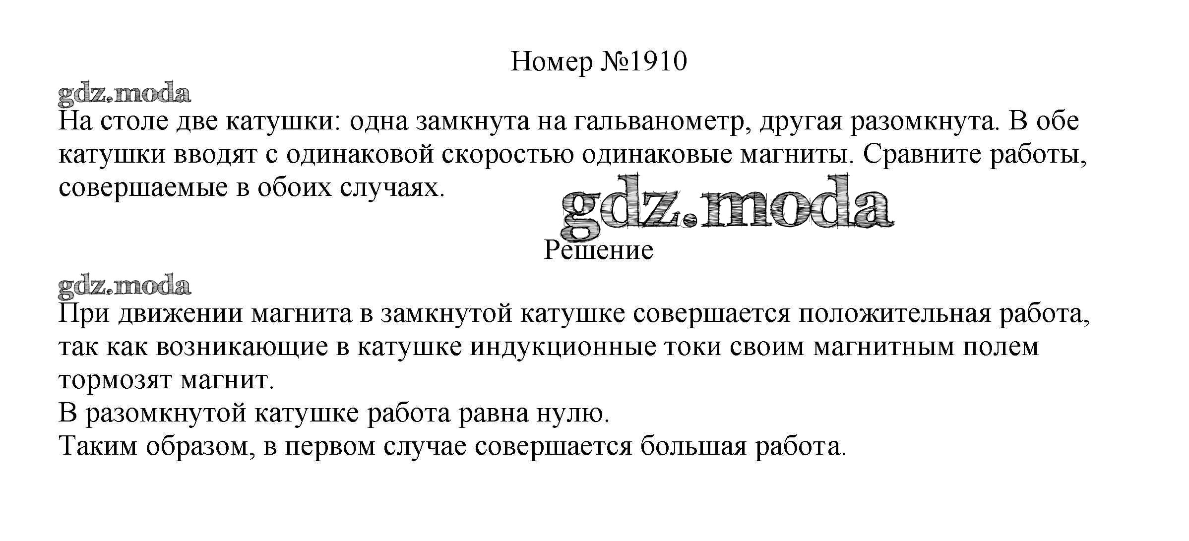 ГДЗ решение к заданию № 1910 Физика 7-9 классы сборник вопросов и задач Марон А.Е. Дрофа 2013 ФГОС бесплатно на гдз.мода!