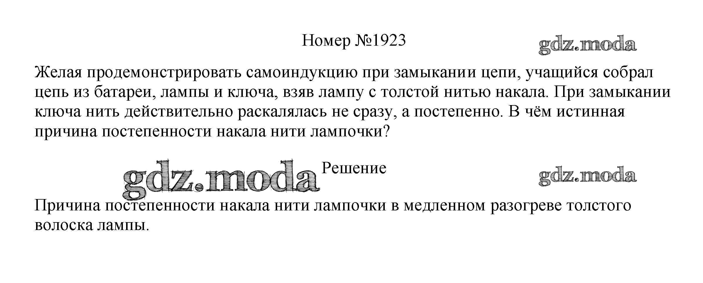 ГДЗ решение к заданию № 1923 Физика 7-9 классы сборник вопросов и задач Марон А.Е. Дрофа 2013 ФГОС бесплатно на гдз.мода!