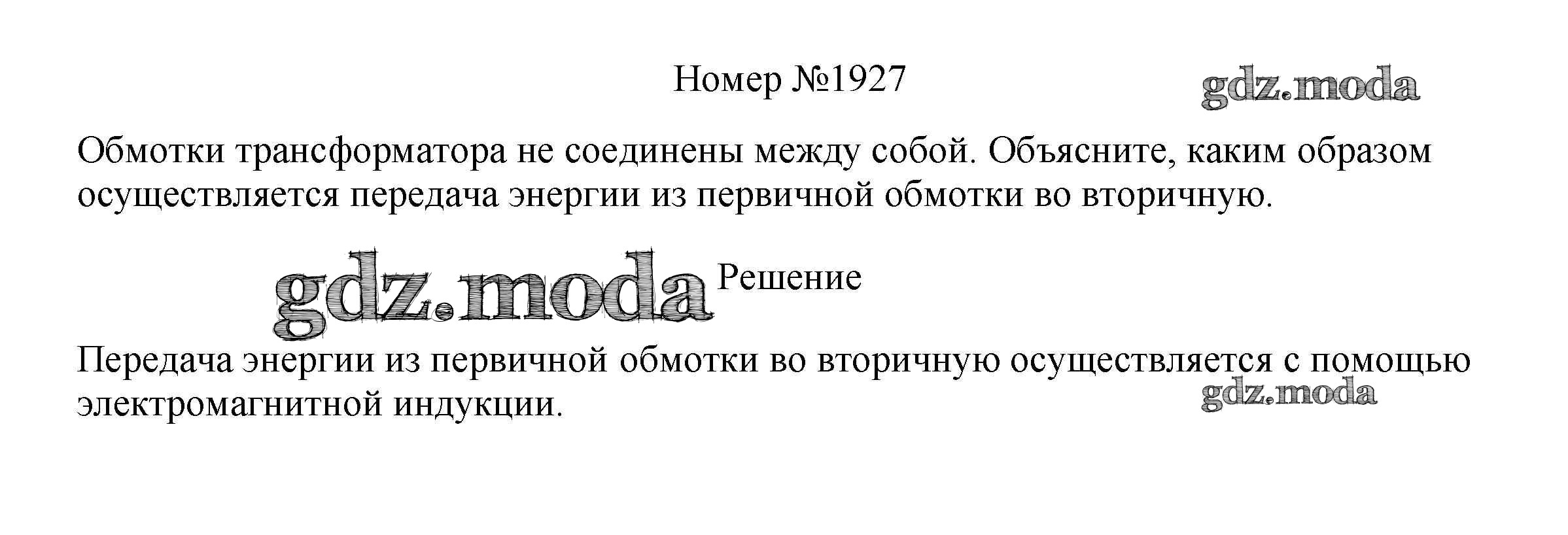 ГДЗ решение к заданию № 1927 Физика 7-9 классы сборник вопросов и задач Марон А.Е. Дрофа 2013 ФГОС бесплатно на гдз.мода!