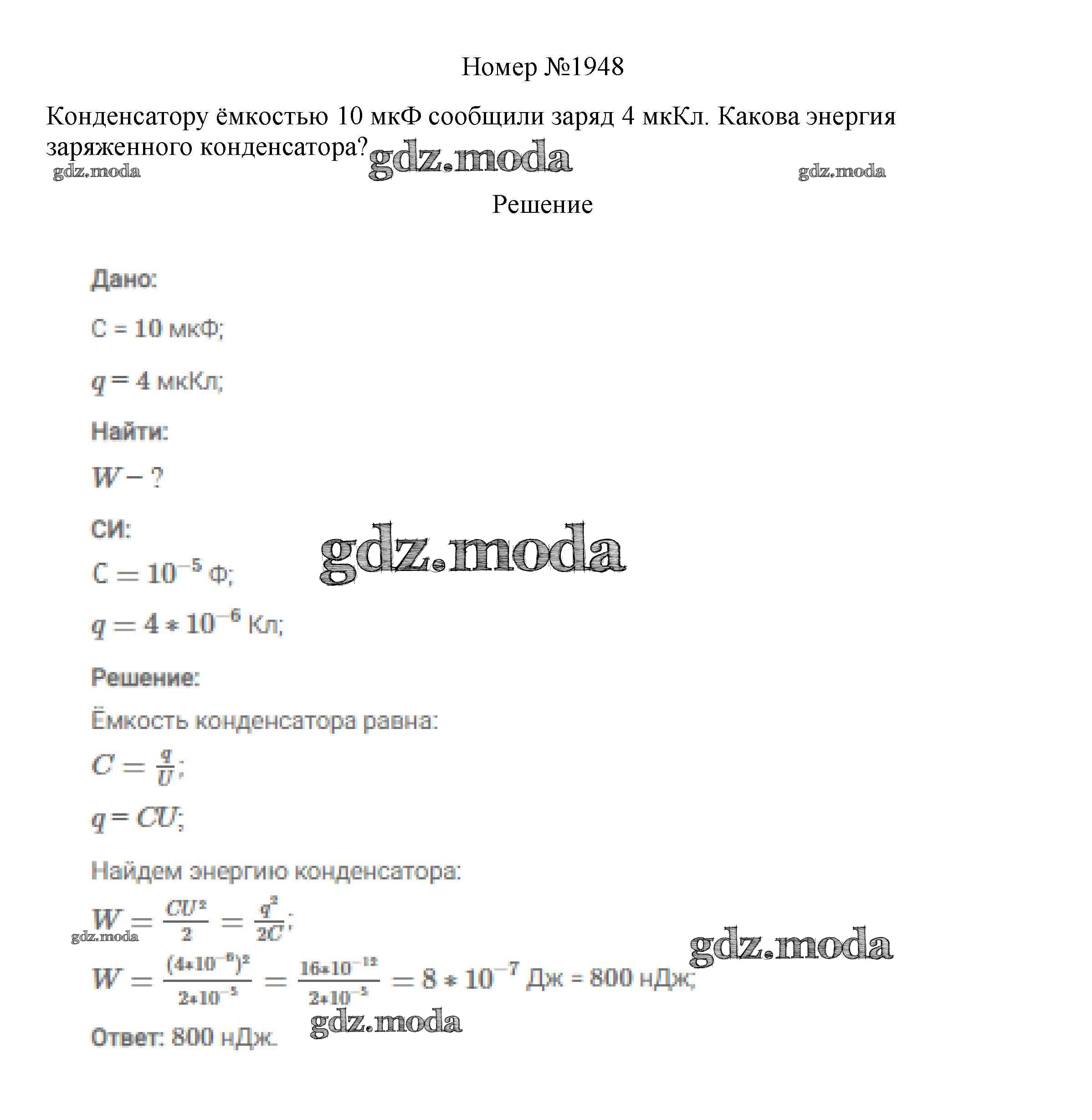 ГДЗ решение к заданию № 1948 Физика 7-9 классы сборник вопросов и задач Марон А.Е. Дрофа 2013 ФГОС бесплатно на гдз.мода!