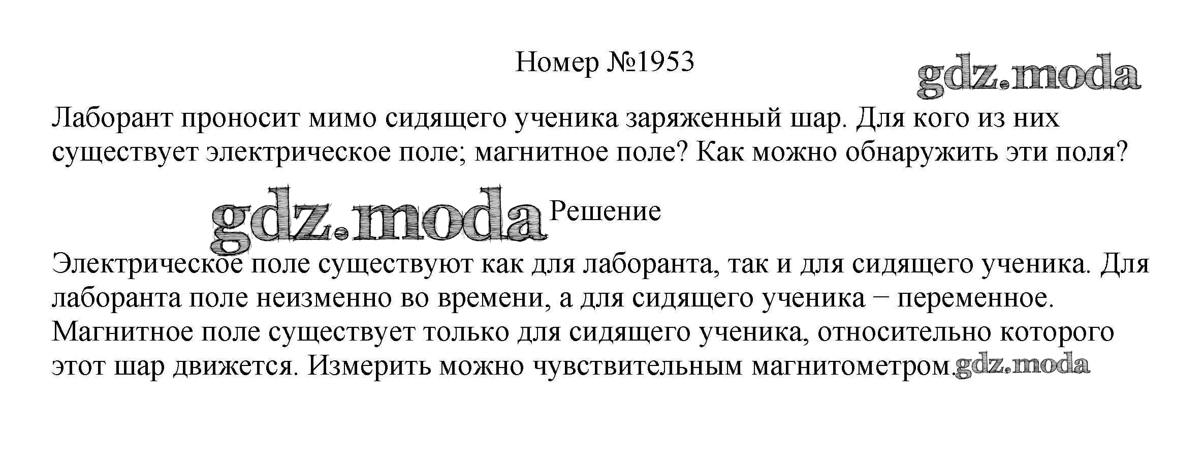 ГДЗ решение к заданию № 1953 Физика 7-9 классы сборник вопросов и задач Марон А.Е. Дрофа 2013 ФГОС бесплатно на гдз.мода!
