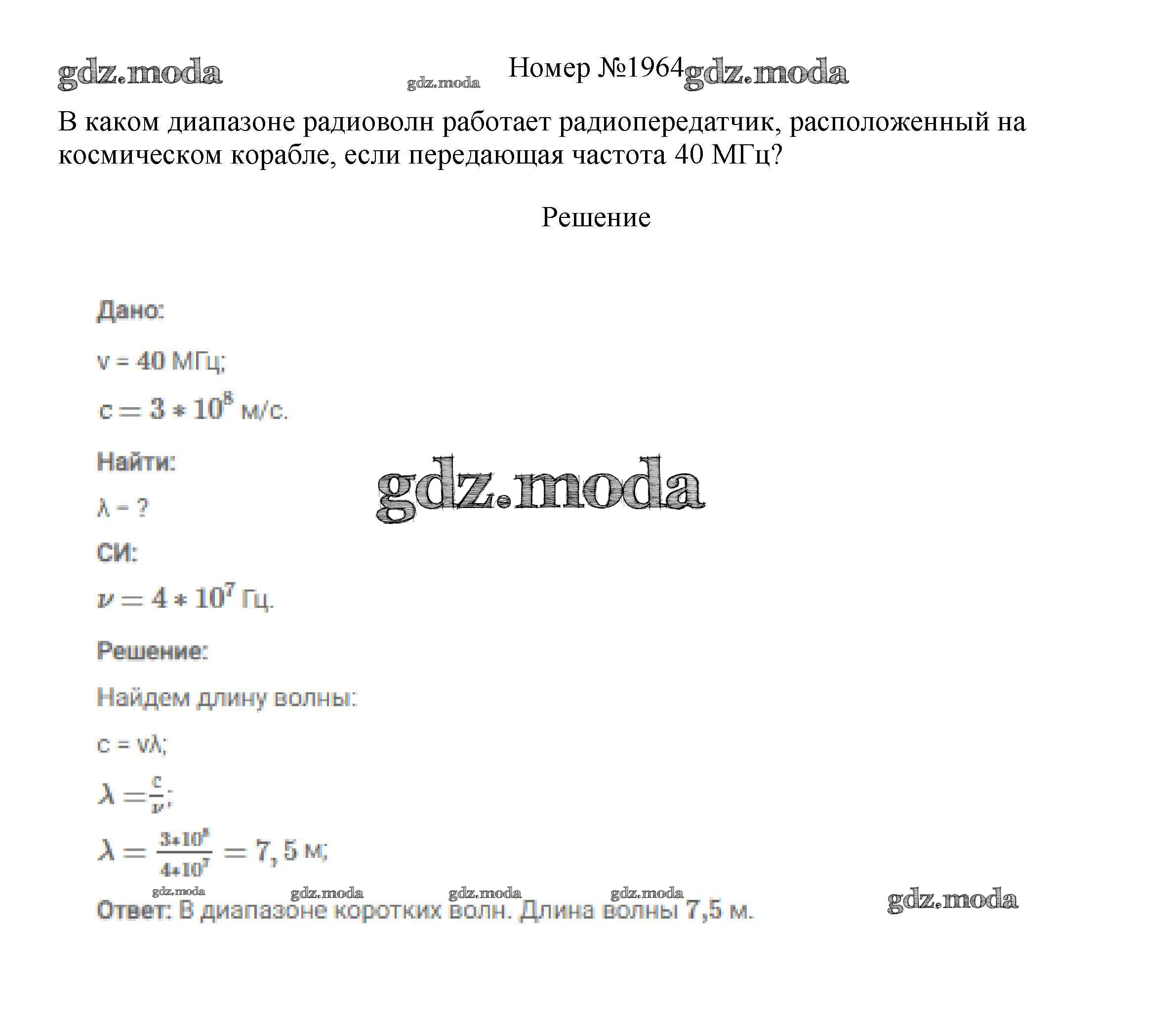 ГДЗ решение к заданию № 1964 Физика 7-9 классы сборник вопросов и задач Марон А.Е. Дрофа 2013 ФГОС бесплатно на гдз.мода!