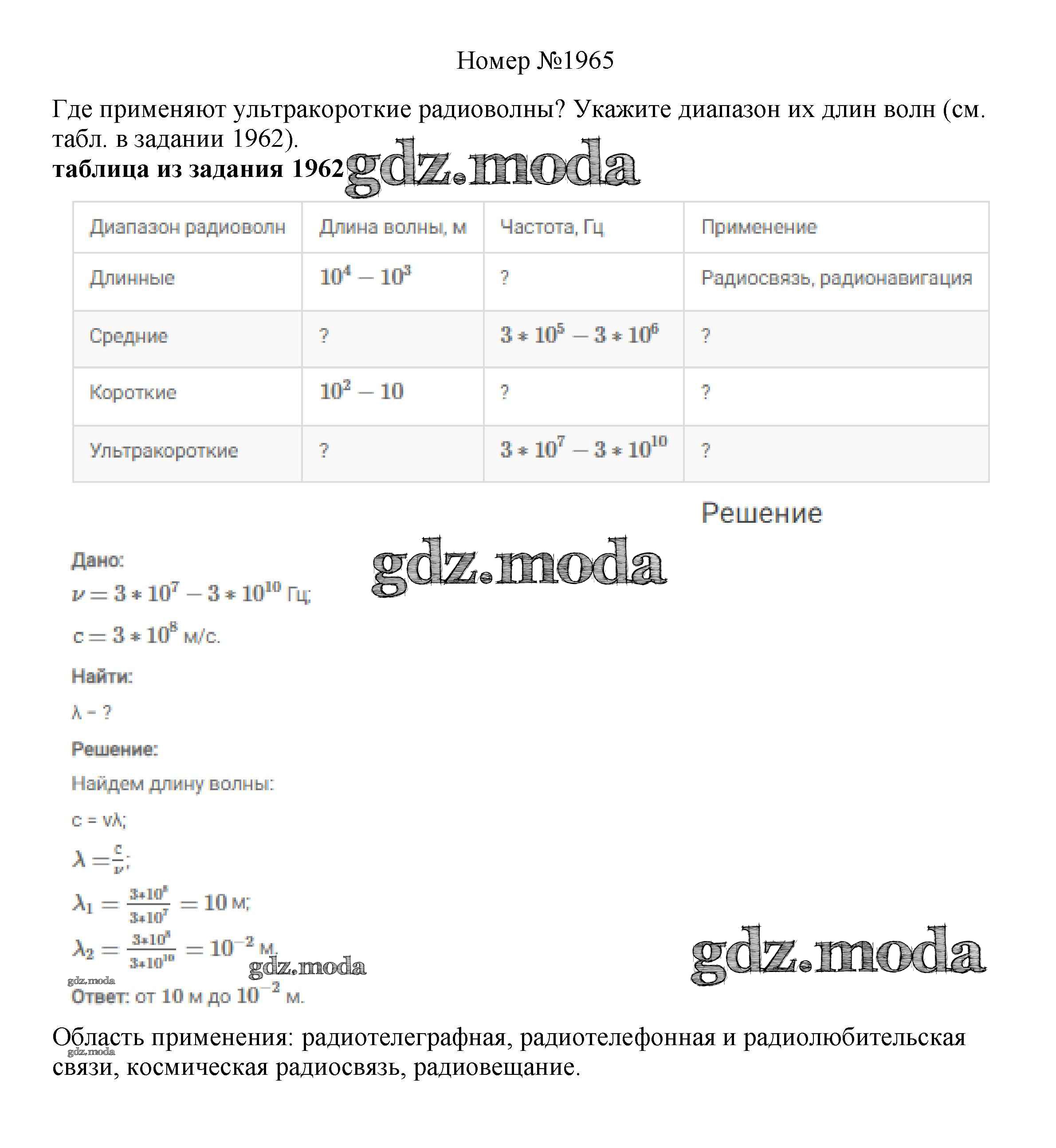 ГДЗ решение к заданию № 1965 Физика 7-9 классы сборник вопросов и задач Марон А.Е. Дрофа 2013 ФГОС бесплатно на гдз.мода!