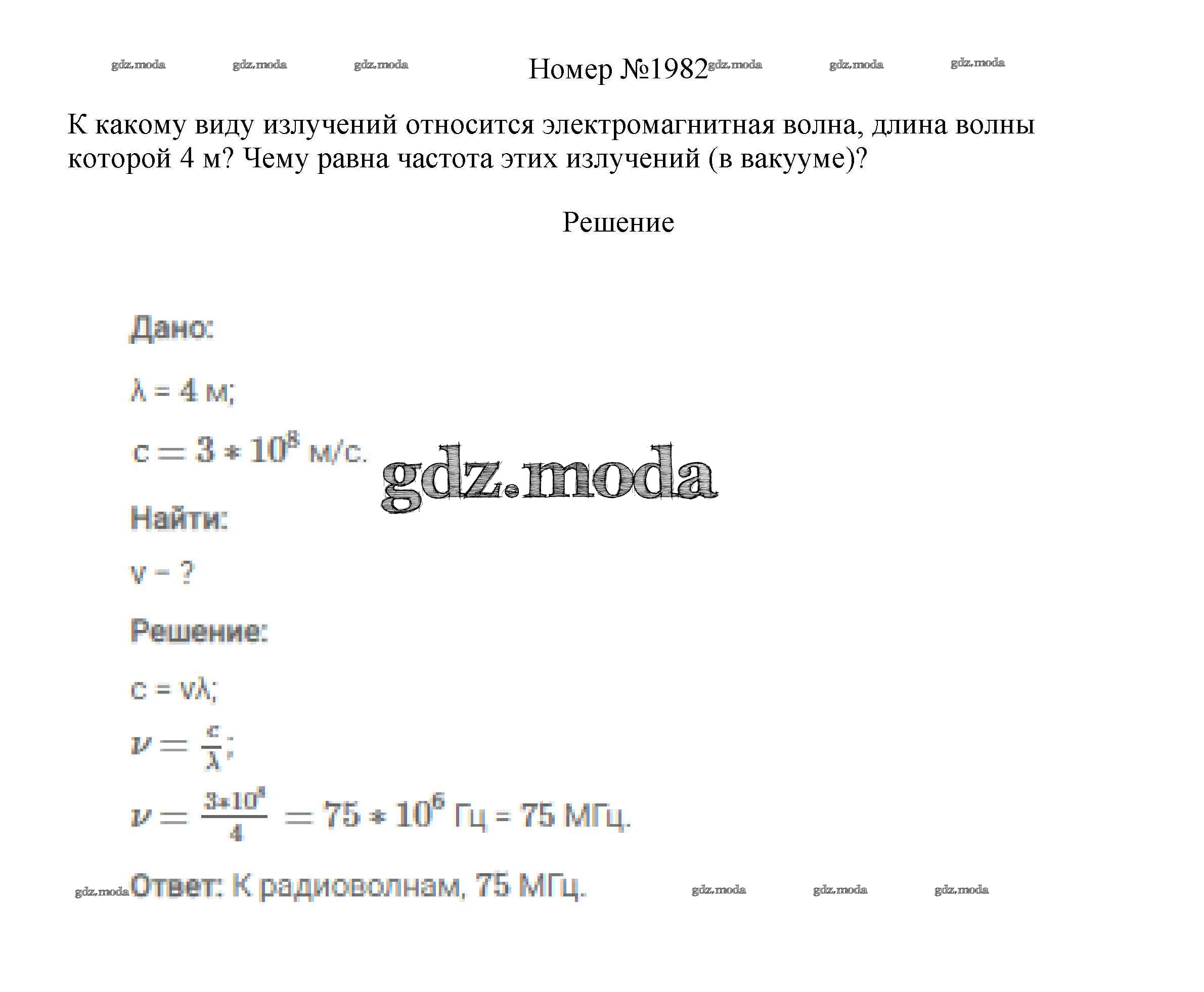 ГДЗ решение к заданию № 1982 Физика 7-9 классы сборник вопросов и задач Марон А.Е. Дрофа 2013 ФГОС бесплатно на гдз.мода!