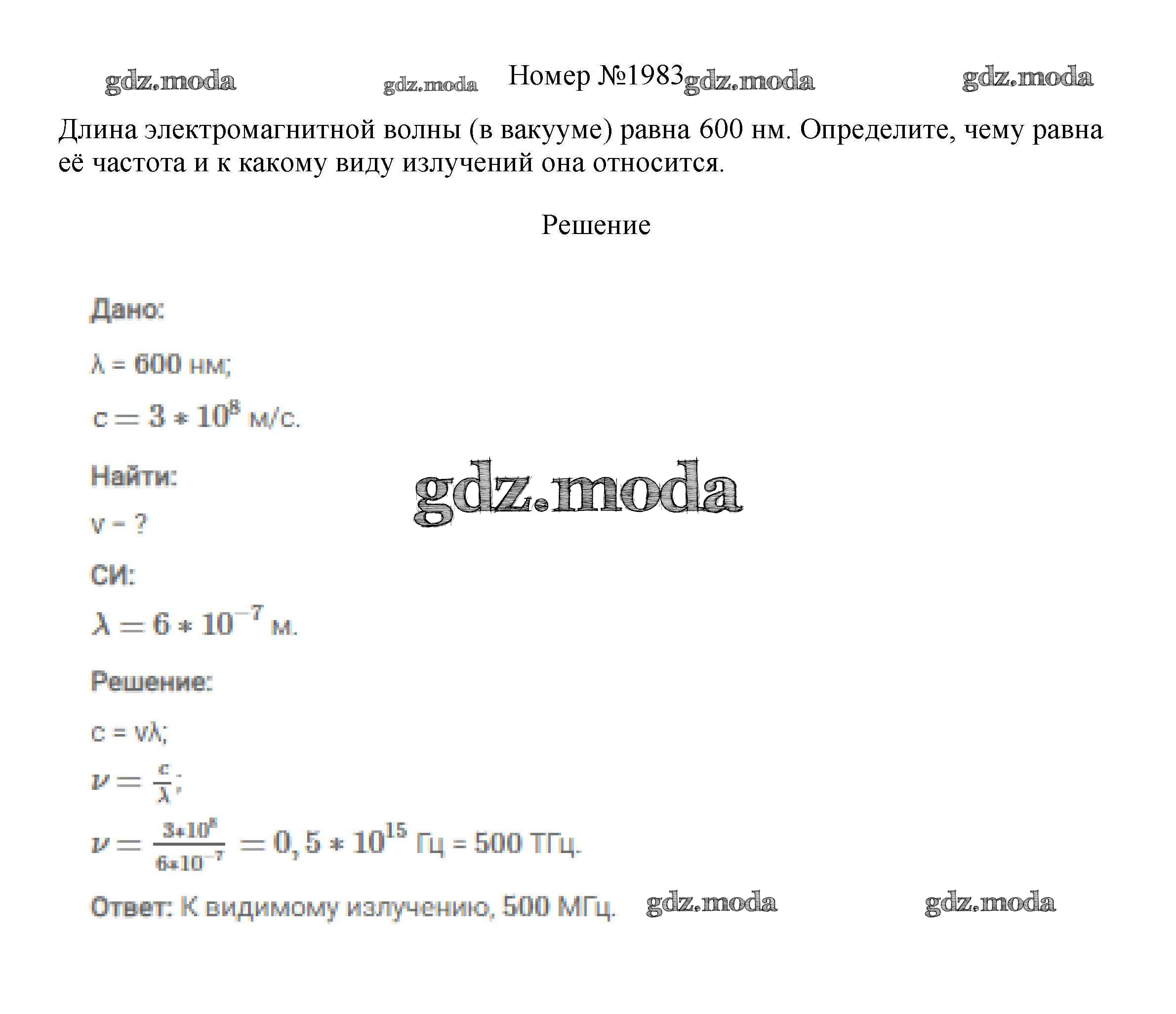 ГДЗ решение к заданию № 1983 Физика 7-9 классы сборник вопросов и задач Марон А.Е. Дрофа 2013 ФГОС бесплатно на гдз.мода!