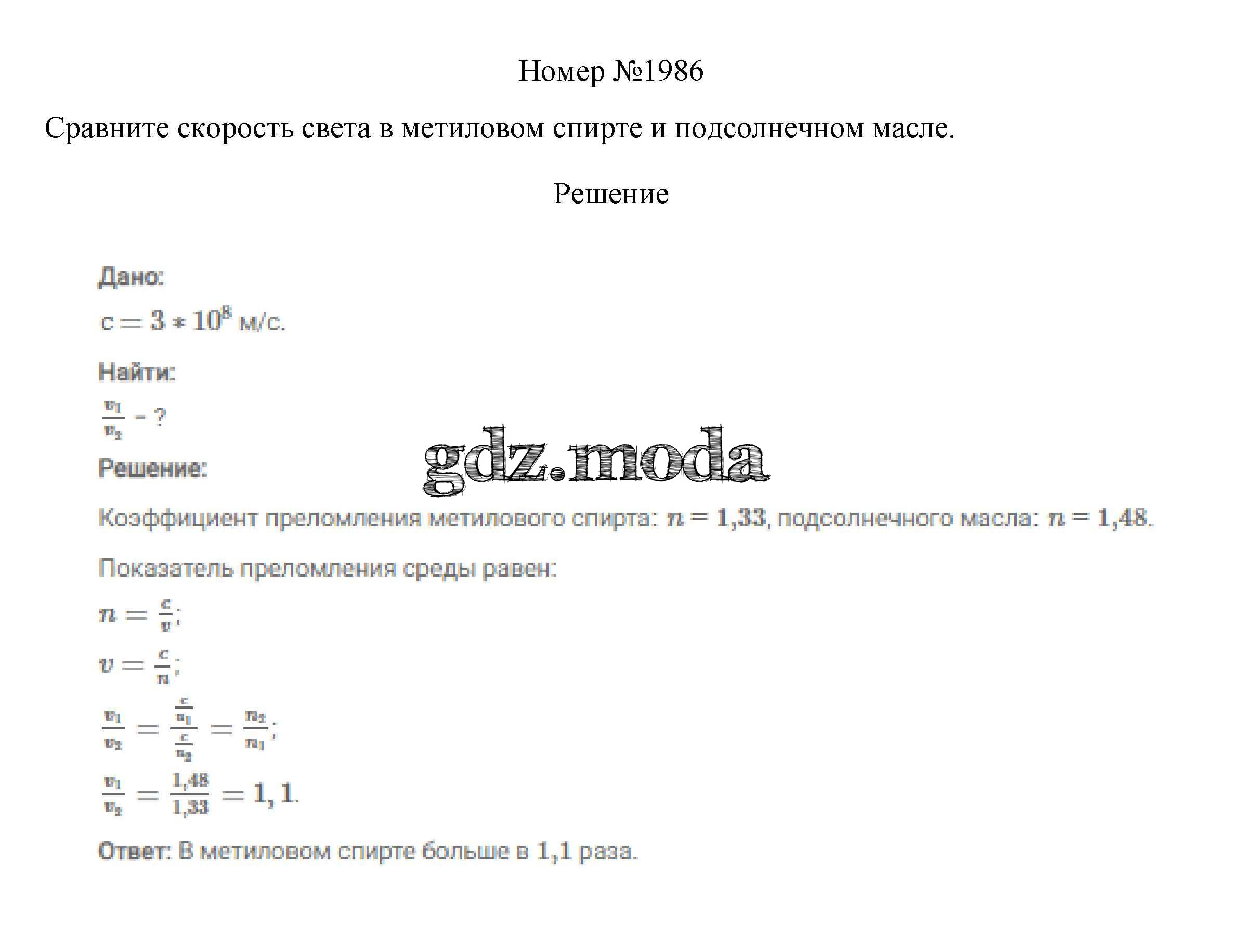 ГДЗ решение к заданию № 1986 Физика 7-9 классы сборник вопросов и задач Марон А.Е. Дрофа 2013 ФГОС бесплатно на гдз.мода!