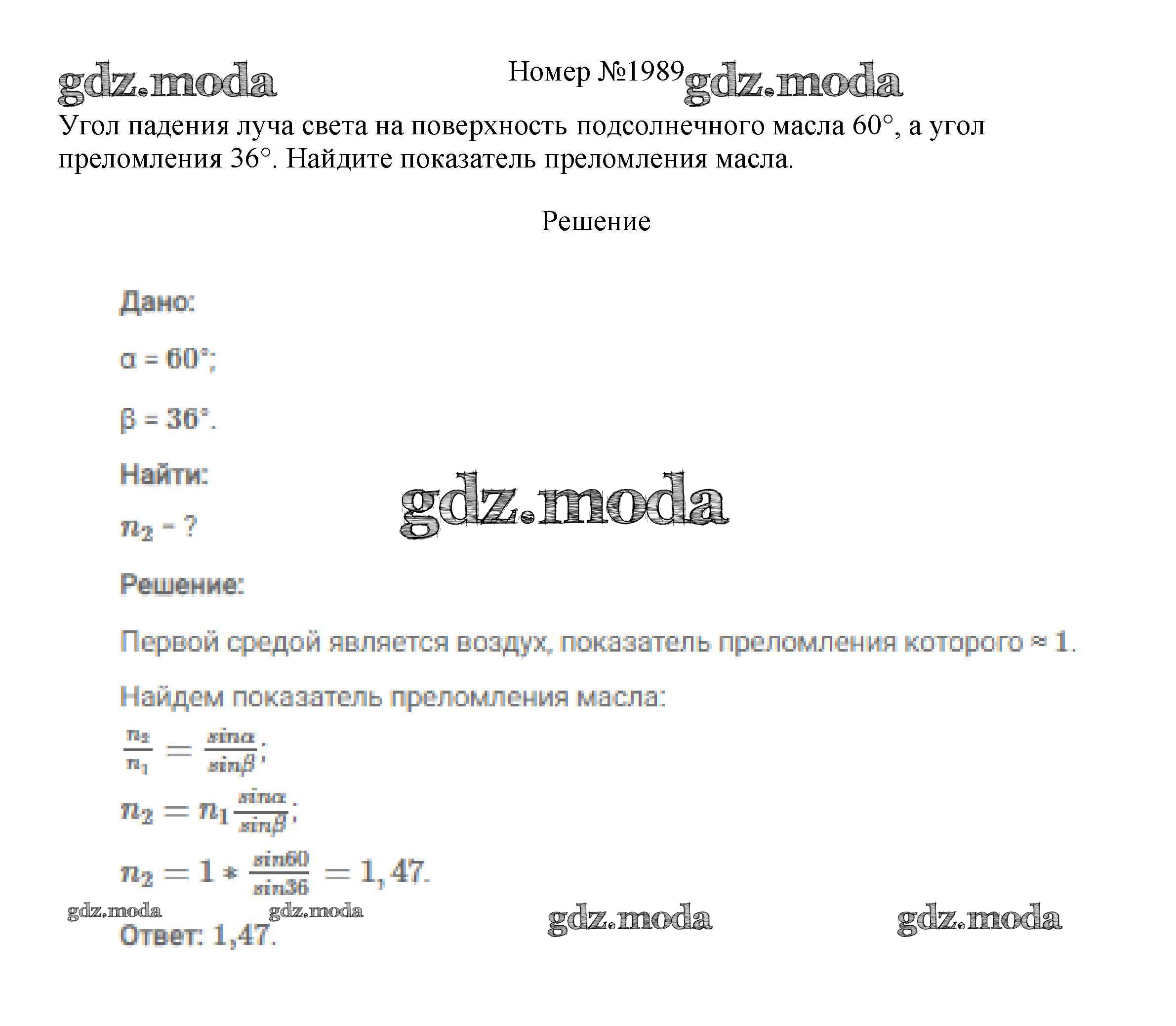 ГДЗ решение к заданию № 1989 Физика 7-9 классы сборник вопросов и задач Марон А.Е. Дрофа 2013 ФГОС бесплатно на гдз.мода!