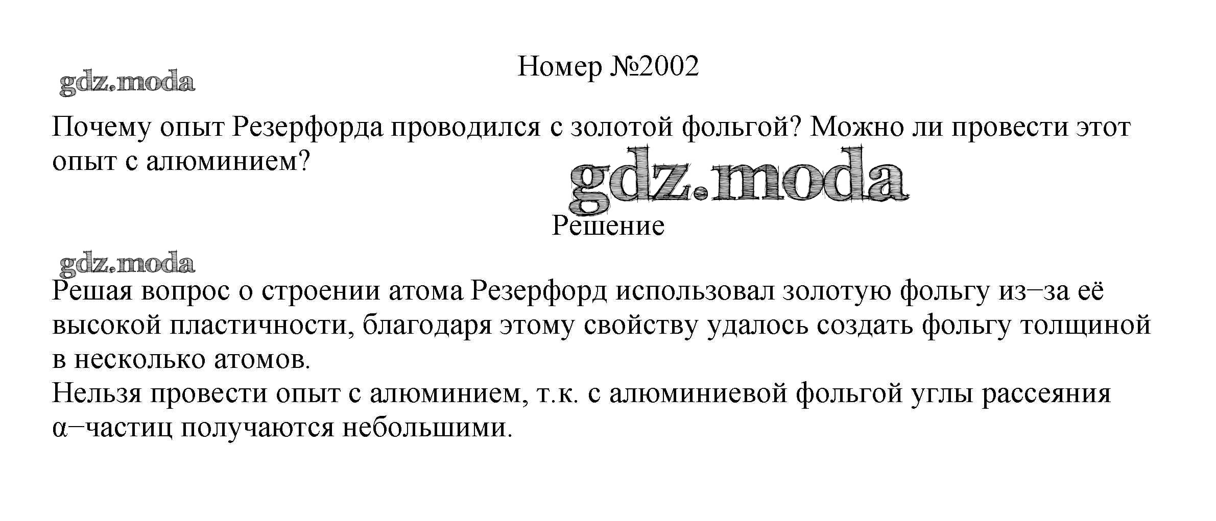 ГДЗ решение к заданию № 2002 Физика 7-9 классы сборник вопросов и задач Марон А.Е. Дрофа 2013 ФГОС бесплатно на гдз.мода!