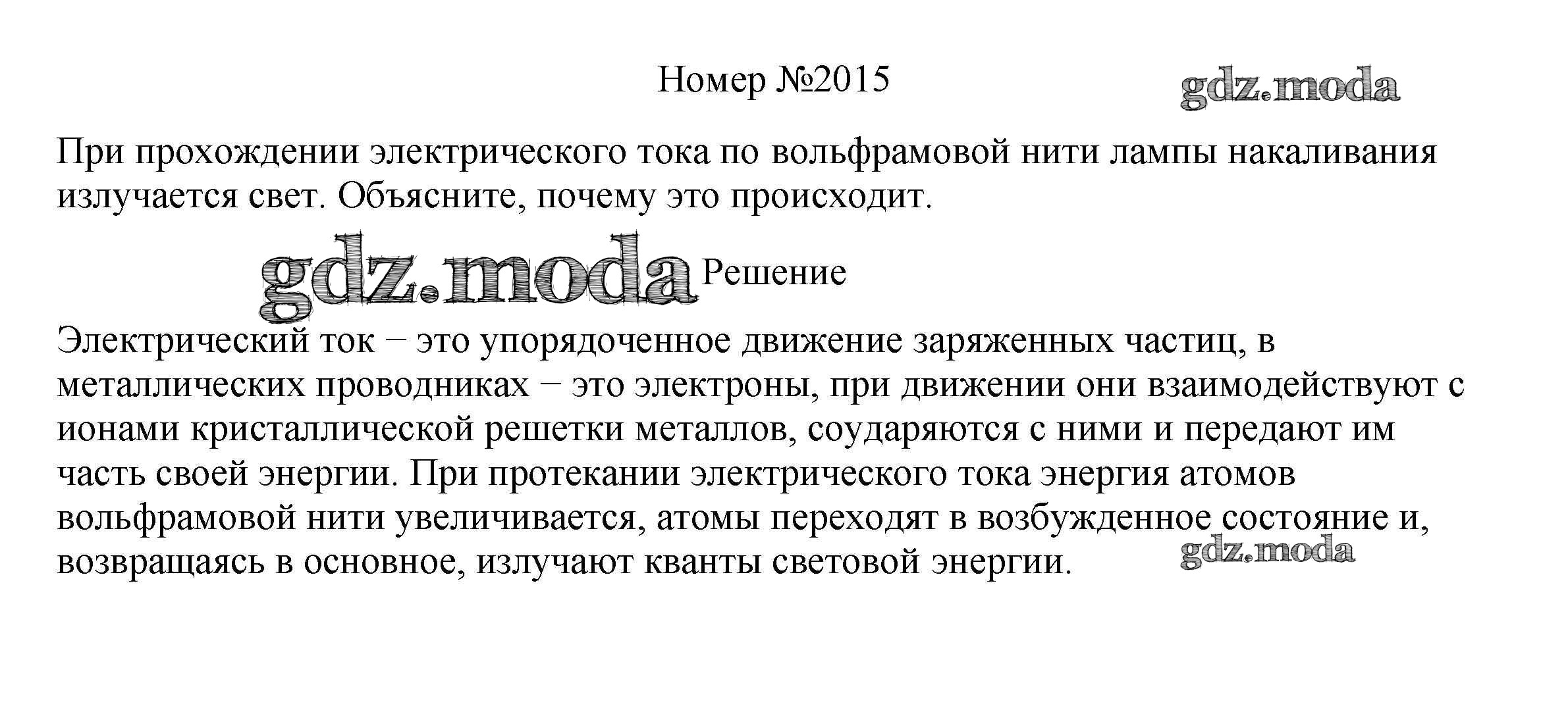 ГДЗ решение к заданию № 2015 Физика 7-9 классы сборник вопросов и задач Марон А.Е. Дрофа 2013 ФГОС бесплатно на гдз.мода!