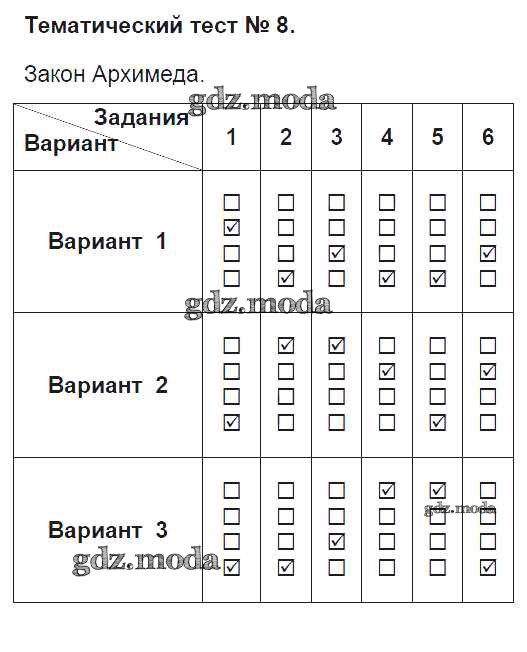 ГДЗ решение к заданию № Тематический тест-8 Физика 7 класс Тесты Ханнанов Н.К. (к уч. Перышкина) Дрофа 2017 ФГОС бесплатно на гдз.мода!