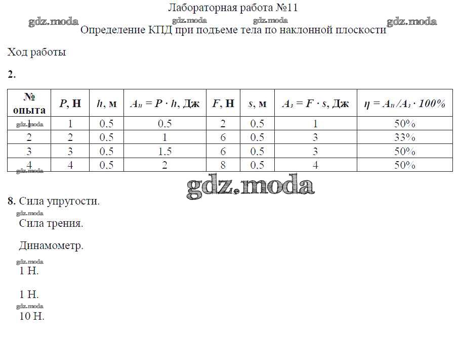 ГДЗ решение к заданию № ЛР №11. Определение КПД при подъеме тела по наклонной плоскости Физика 7 класс тетрадь для лабораторных работ Минькова Р.Д. (к уч. Перышкина) Экзамен 2017 ФГОС бесплатно на гдз.мода!