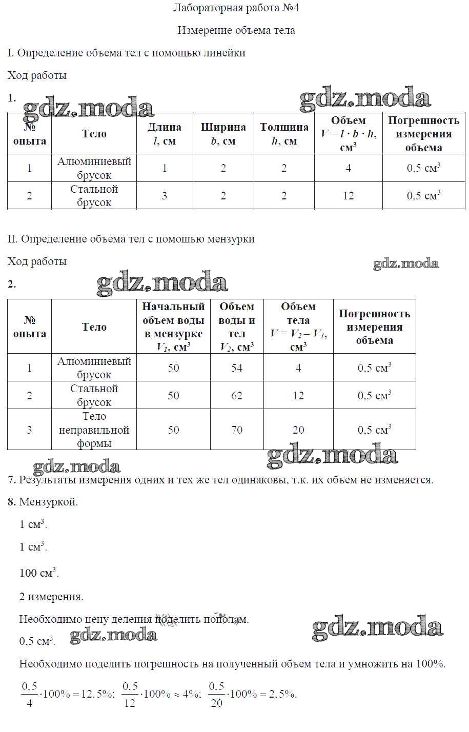 ОТВЕТ на задание № ЛР №4. Измерение объема тела Тетрадь для лабораторных работ по Физике 7 класс Минькова УМК