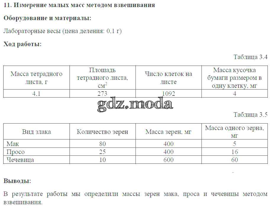 ГДЗ решение к заданию № №11. Измерение малых масс методом взвешивания Физика 7 класс тетрадь-практикум Белага В.В. Просвещение 2012 ФГОС бесплатно на гдз.мода!