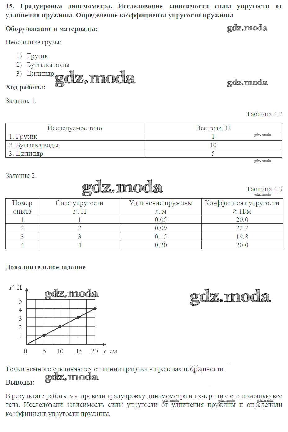 ГДЗ решение к заданию № №15. Градуировка динамометра Физика 7 класс тетрадь-практикум Белага В.В. Просвещение 2012 ФГОС бесплатно на гдз.мода!