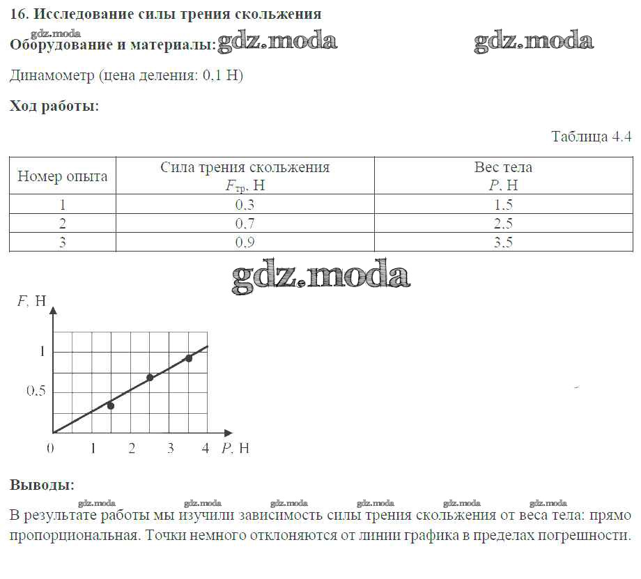 ГДЗ решение к заданию № №16. Исследование силы трения скольжения Физика 7 класс тетрадь-практикум Белага В.В. Просвещение 2012 ФГОС бесплатно на гдз.мода!