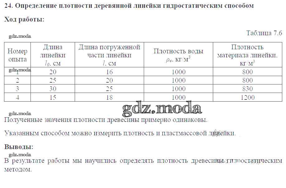 ОТВЕТ на задание № №24. Определение плотности деревянной линейки гидростатическим способом Тетрадь-практикум по Физике 7 класс Белага Сферы