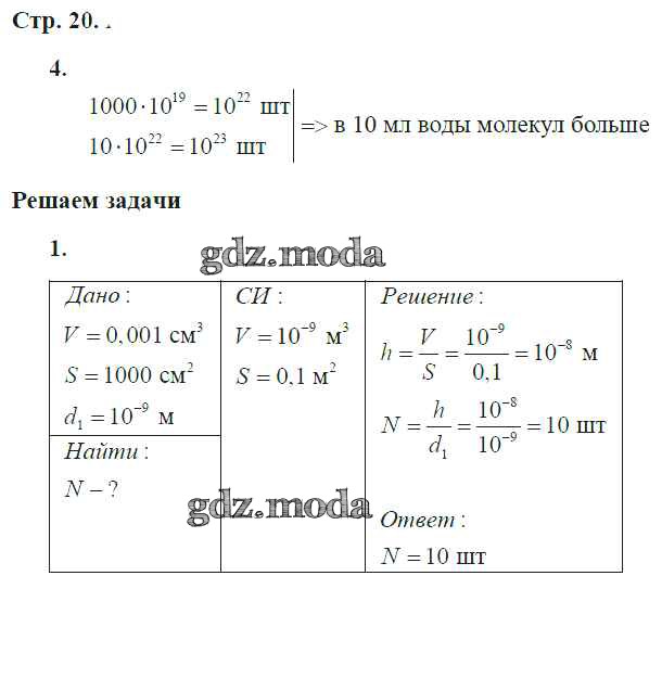 ГДЗ решение к заданию № стр.20 Физика 7 класс тетрадь-тренажер Артеменков Д.А. Просвещение 2016 ФГОС бесплатно на гдз.мода!
