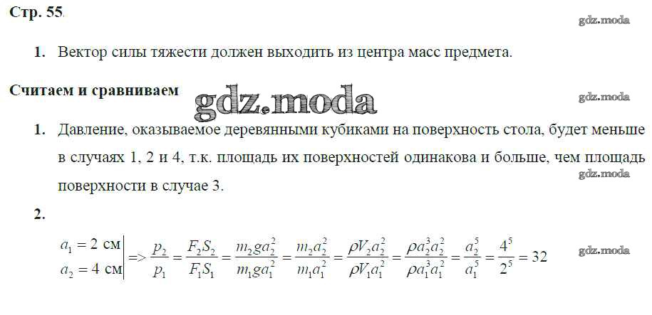 ГДЗ решение к заданию № стр.55 Физика 7 класс тетрадь-тренажер Артеменков Д.А. Просвещение 2016 ФГОС бесплатно на гдз.мода!