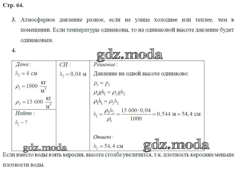 ГДЗ решение к заданию № стр.64 Физика 7 класс тетрадь-тренажер Артеменков Д.А. Просвещение 2016 ФГОС бесплатно на гдз.мода!