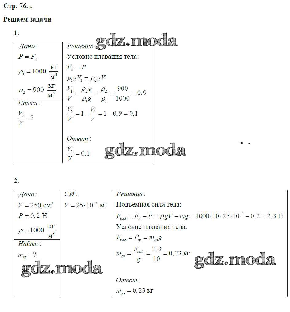 ГДЗ решение к заданию № стр.76 Физика 7 класс тетрадь-тренажер Артеменков Д.А. Просвещение 2016 ФГОС бесплатно на гдз.мода!