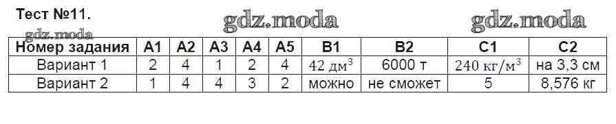ГДЗ решение к заданию № Тест-11 Физика 7 класс контрольно-измерительные материалы Зорин Н.И. ВАКО 2017 ФГОС бесплатно на гдз.мода!
