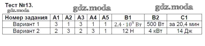 ГДЗ решение к заданию № Тест-13 Физика 7 класс контрольно-измерительные материалы Зорин Н.И. ВАКО 2017 ФГОС бесплатно на гдз.мода!