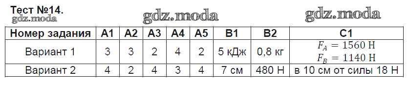 ГДЗ решение к заданию № Тест-14 Физика 7 класс контрольно-измерительные материалы Зорин Н.И. ВАКО 2017 ФГОС бесплатно на гдз.мода!