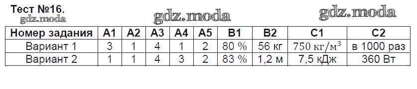 ГДЗ решение к заданию № Тест-16 Физика 7 класс контрольно-измерительные материалы Зорин Н.И. ВАКО 2017 ФГОС бесплатно на гдз.мода!