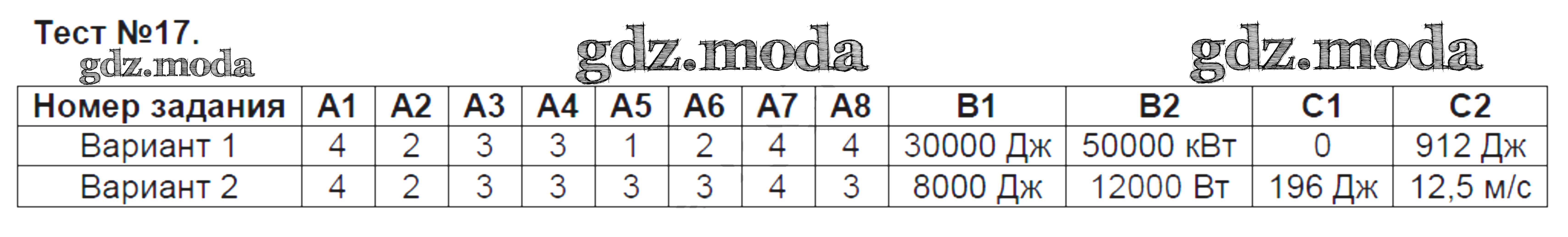 ГДЗ решение к заданию № Тест-17 Физика 7 класс контрольно-измерительные материалы Зорин Н.И. ВАКО 2017 ФГОС бесплатно на гдз.мода!