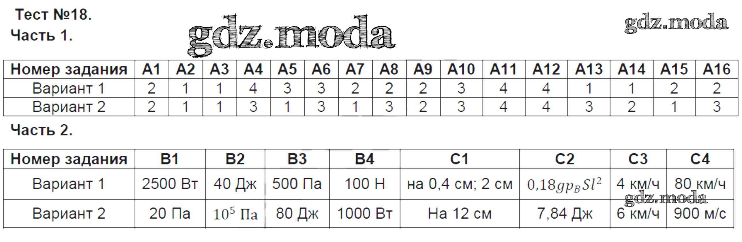 ГДЗ решение к заданию № Тест-18 Физика 7 класс контрольно-измерительные материалы Зорин Н.И. ВАКО 2017 ФГОС бесплатно на гдз.мода!