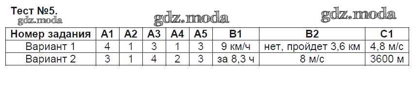 ОТВЕТ на задание № Тест-5 Контрольно-измерительные материалы (КИМ) по Физике 7 класс Зорин