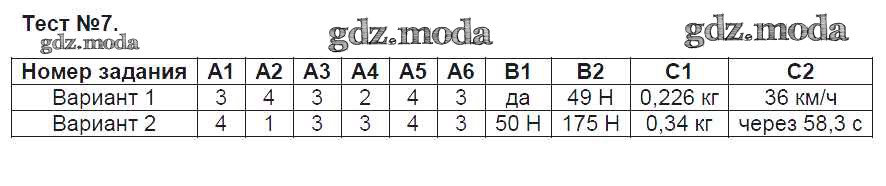 ОТВЕТ на задание № Тест-7 Контрольно-измерительные материалы (КИМ) по Физике 7 класс Зорин