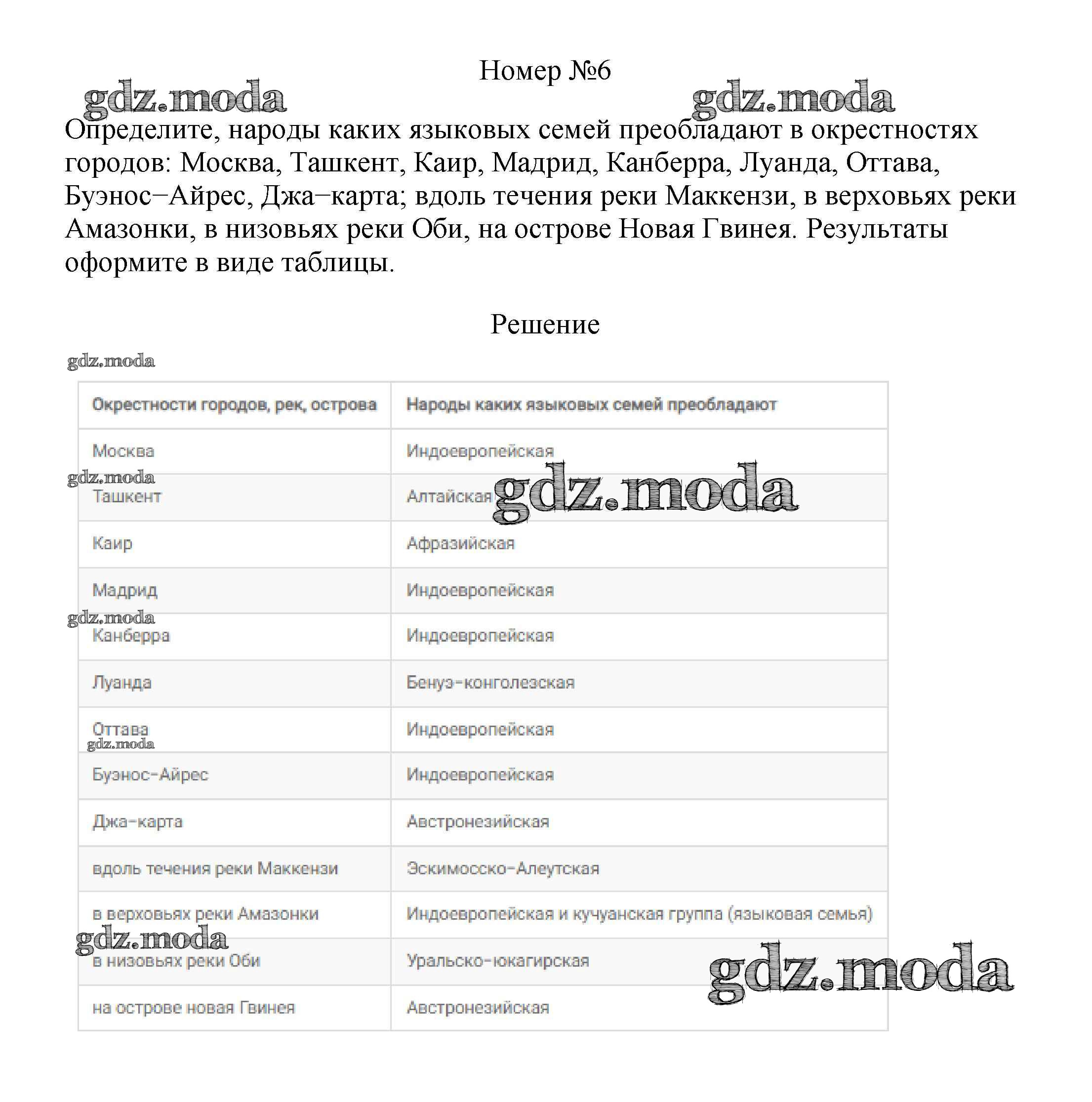 ГДЗ решение к заданию № 6 География 7 класс Алексеев А.И. Просвещение 2022 ФГОС бесплатно на гдз.мода!
