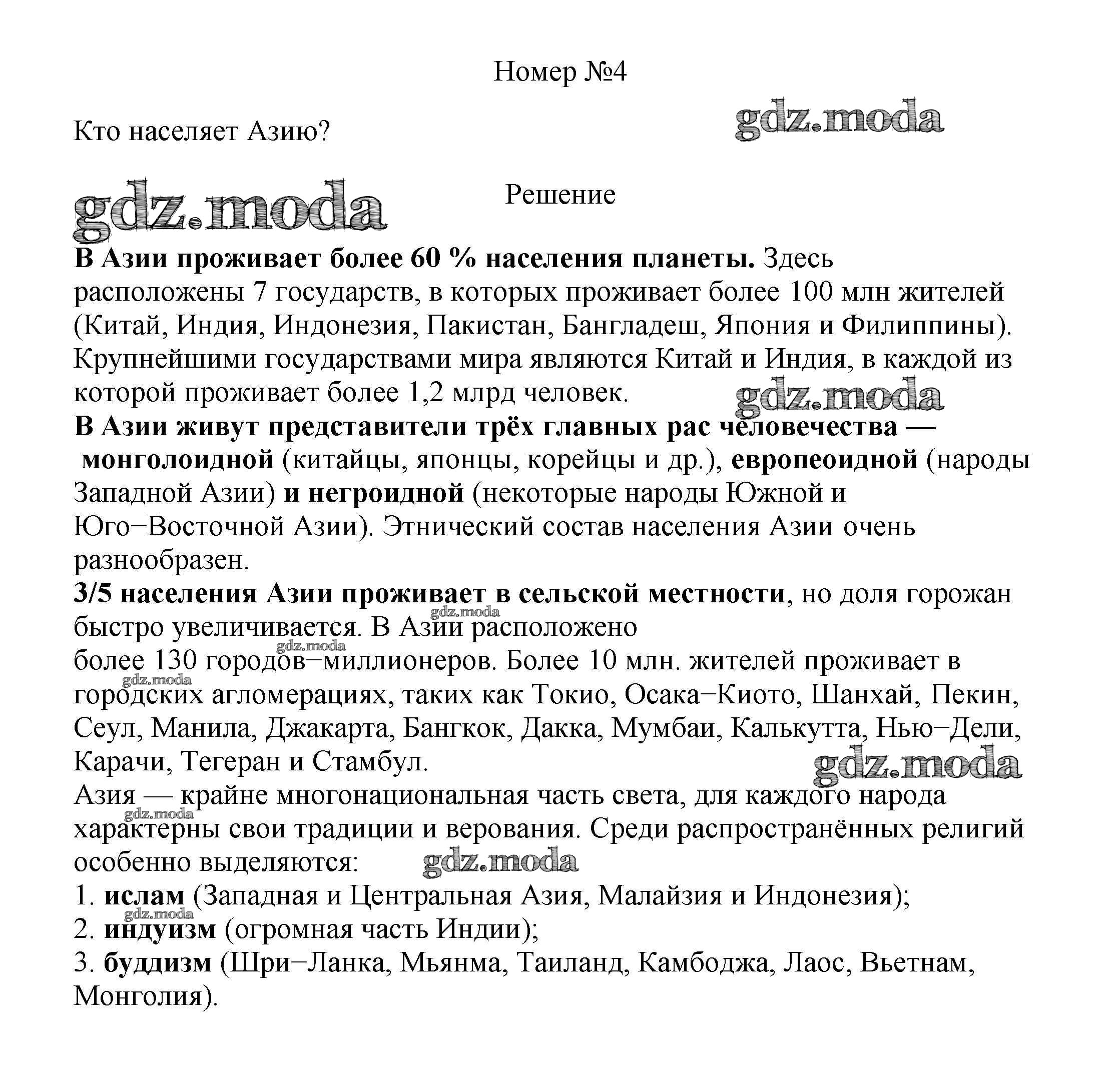 ГДЗ решение к заданию № 4 География 7 класс Алексеев А.И. Просвещение 2022 ФГОС бесплатно на гдз.мода!