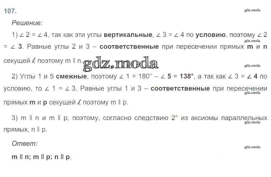 ОТВЕТ на задание № 107 Рабочая тетрадь по Геометрии 7 класс Атанасян