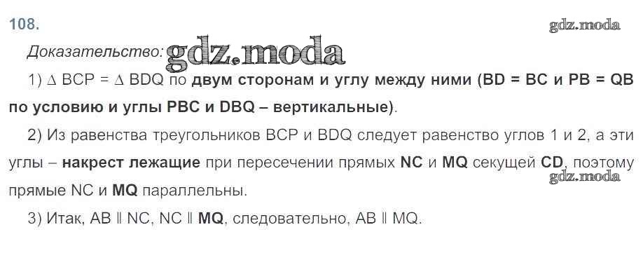 ОТВЕТ на задание № 108 Рабочая тетрадь по Геометрии 7 класс Атанасян