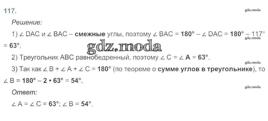 ОТВЕТ на задание № 117 Рабочая тетрадь по Геометрии 7 класс Атанасян