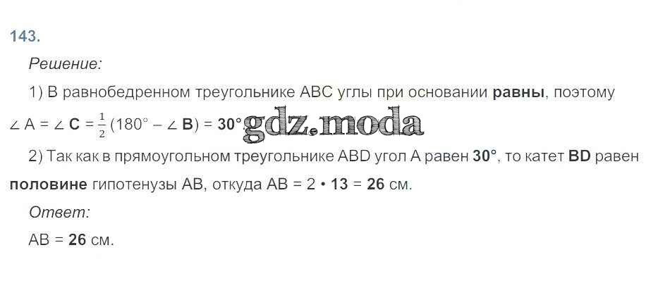 ОТВЕТ на задание № 143 Рабочая тетрадь по Геометрии 7 класс Атанасян