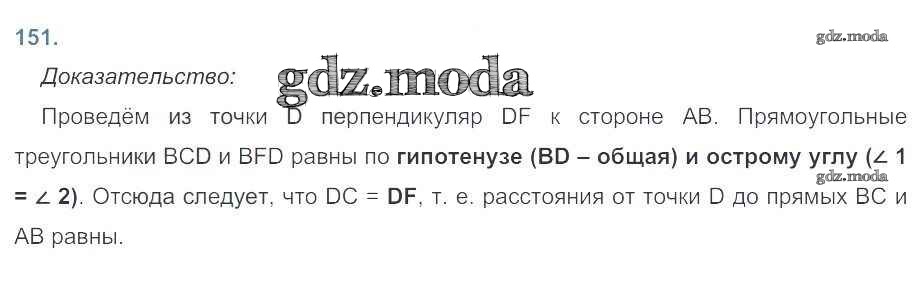 ОТВЕТ на задание № 151 Рабочая тетрадь по Геометрии 7 класс Атанасян