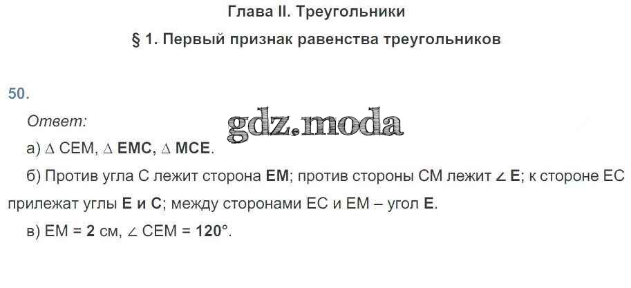 ОТВЕТ на задание № 50 Рабочая тетрадь по Геометрии 7 класс Атанасян
