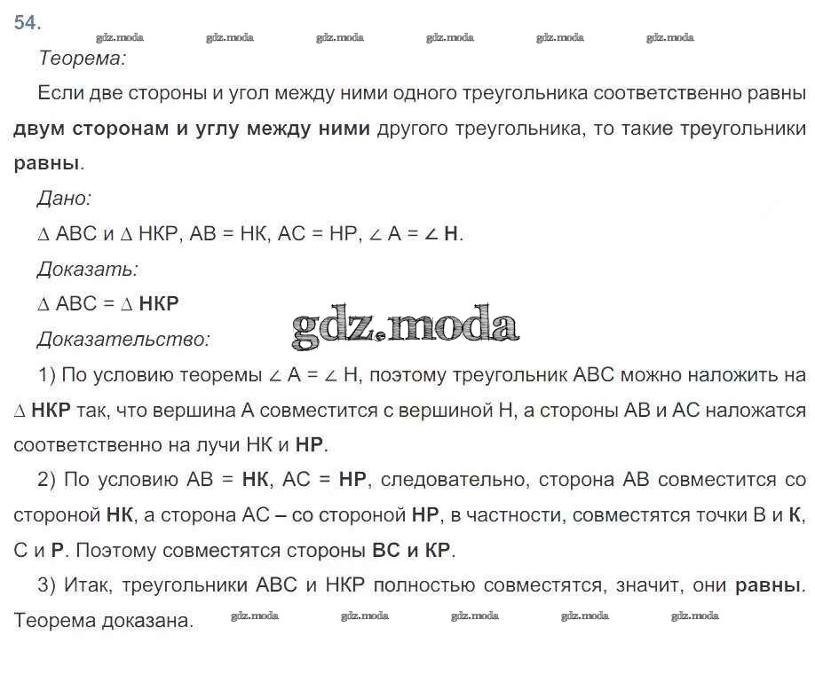 ОТВЕТ на задание № 54 Рабочая тетрадь по Геометрии 7 класс Атанасян