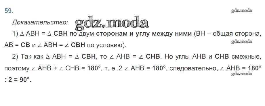 ОТВЕТ на задание № 59 Рабочая тетрадь по Геометрии 7 класс Атанасян