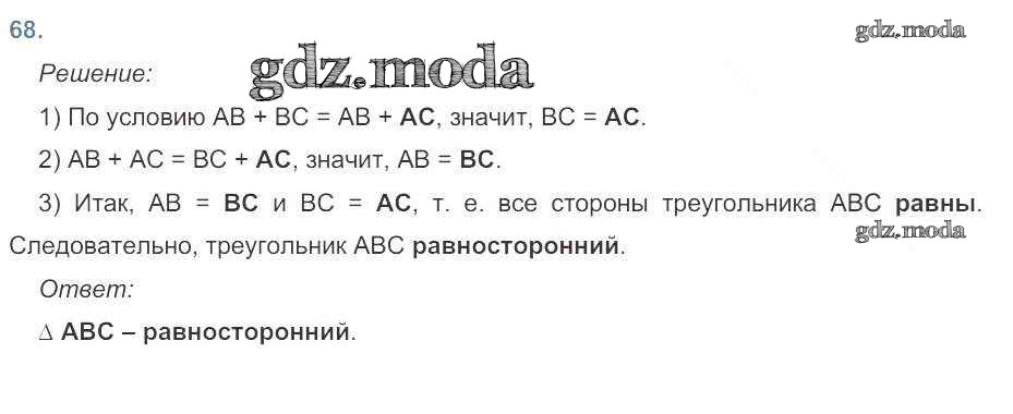 ОТВЕТ на задание № 68 Рабочая тетрадь по Геометрии 7 класс Атанасян