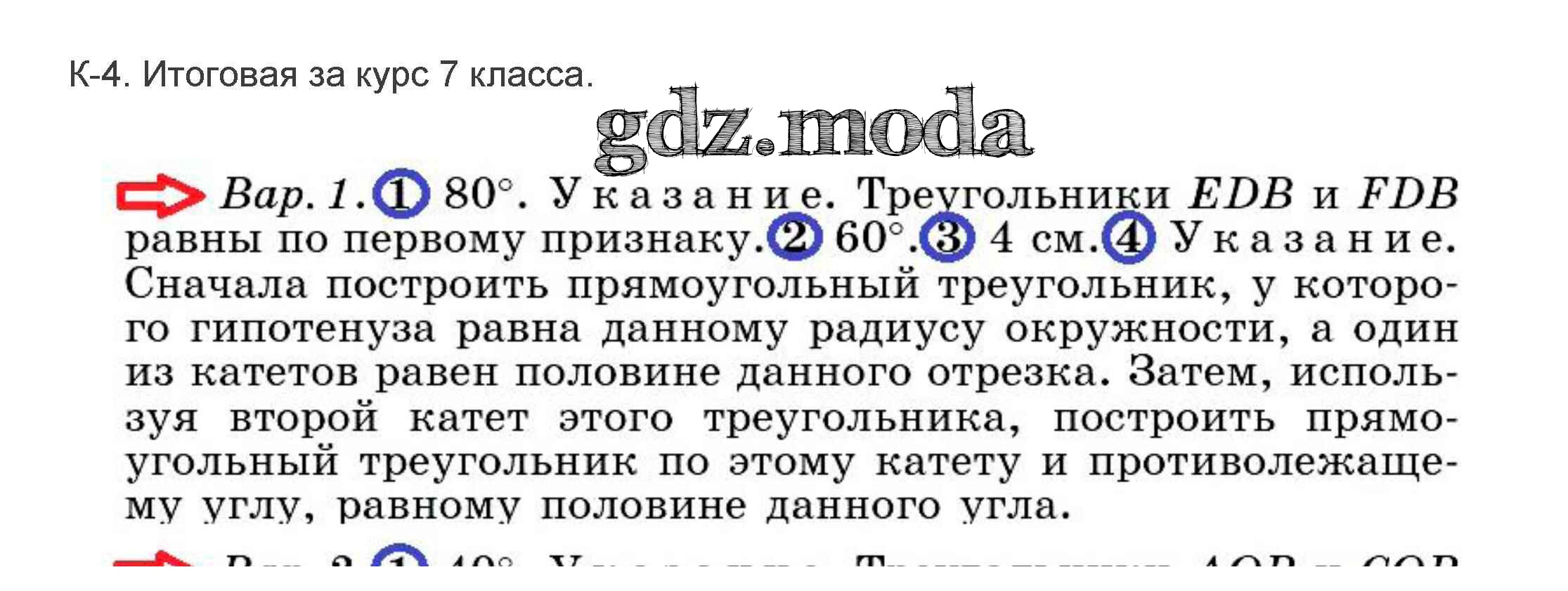 ОТВЕТ на задание № 1 Дидактические материалы по Геометрии 7 класс Бутузов МГУ - школе