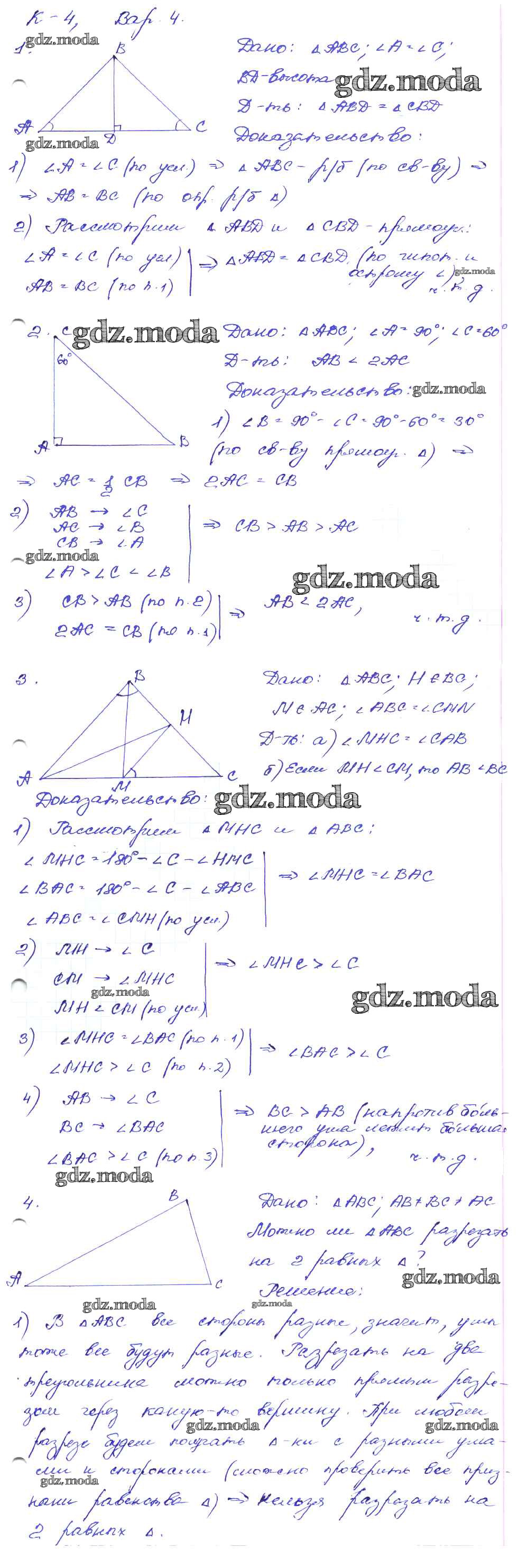 ОТВЕТ на задание № 4 Дидактические материалы по Геометрии 7 класс Зив