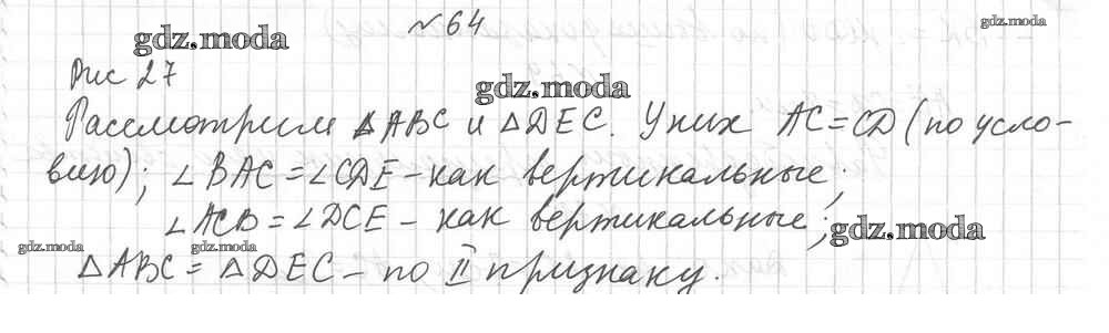 ОТВЕТ на задание № 64 Дидактические материалы по Геометрии 7 класс Мерзляк Алгоритм успеха