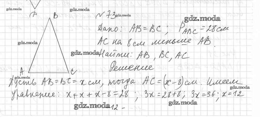 ГДЗ решение к заданию № 73 Геометрия 7 класс Дидактические материалы Мерзляк А.Г. Вентана-граф 2017 ФГОС бесплатно на гдз.мода!