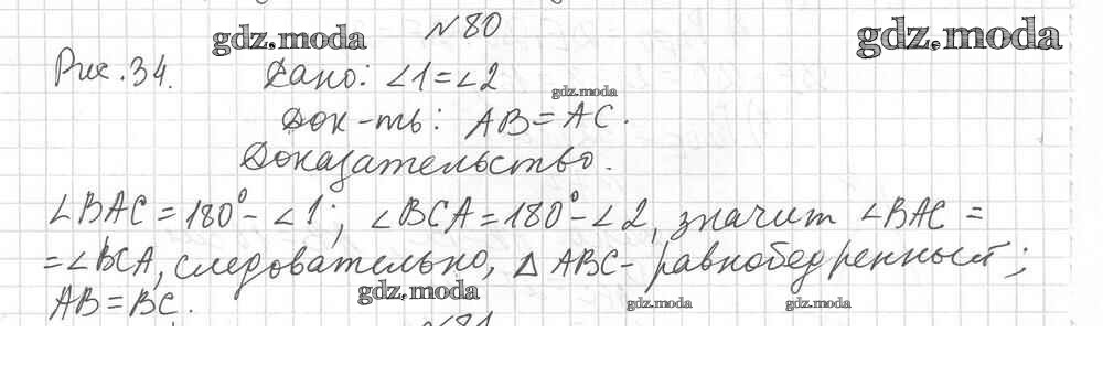ОТВЕТ на задание № 80 Дидактические материалы по Геометрии 7 класс Мерзляк Алгоритм успеха