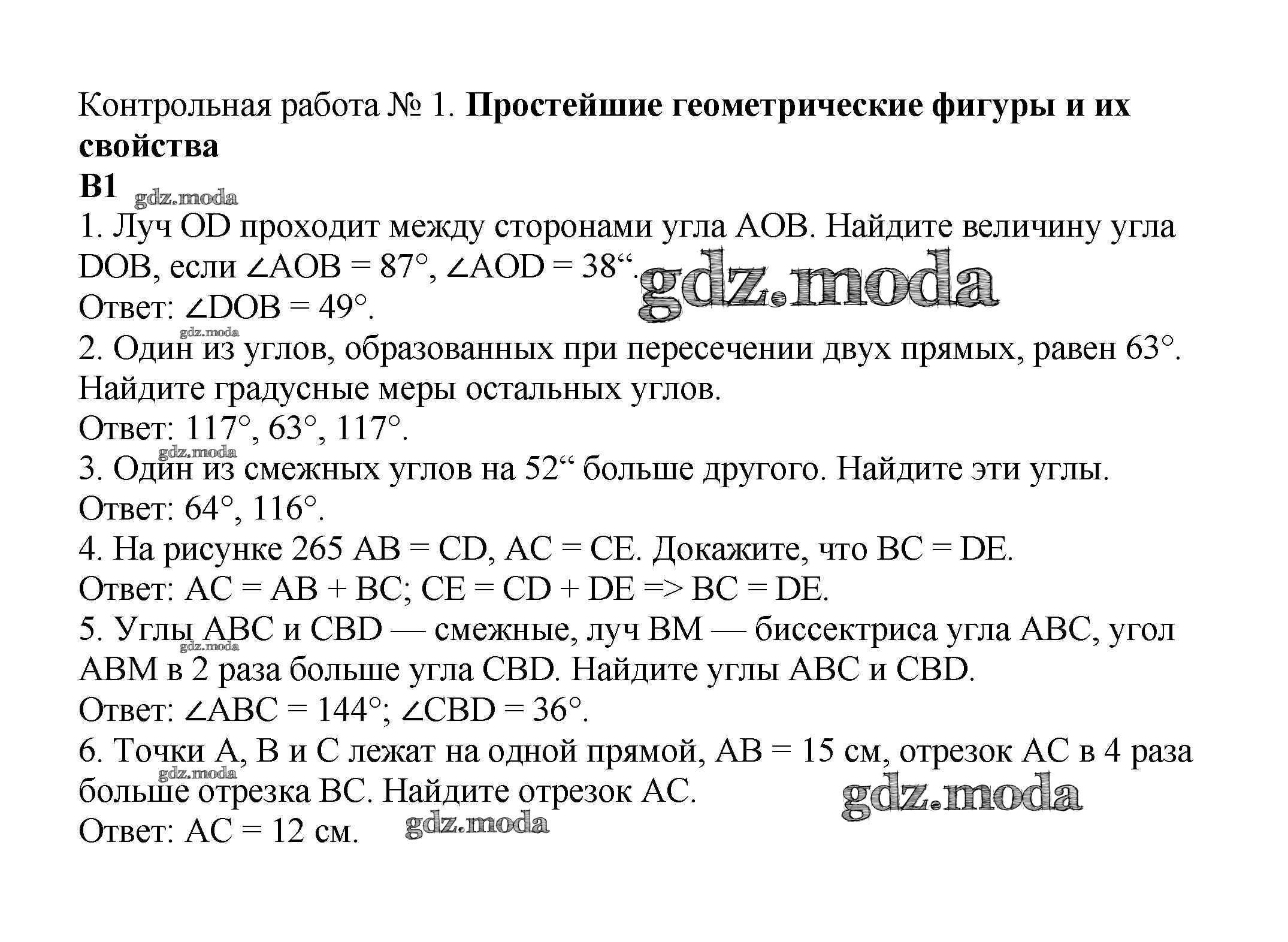 ОТВЕТ на задание № КР-1 Дидактические материалы по Геометрии 7 класс Мерзляк Алгоритм успеха