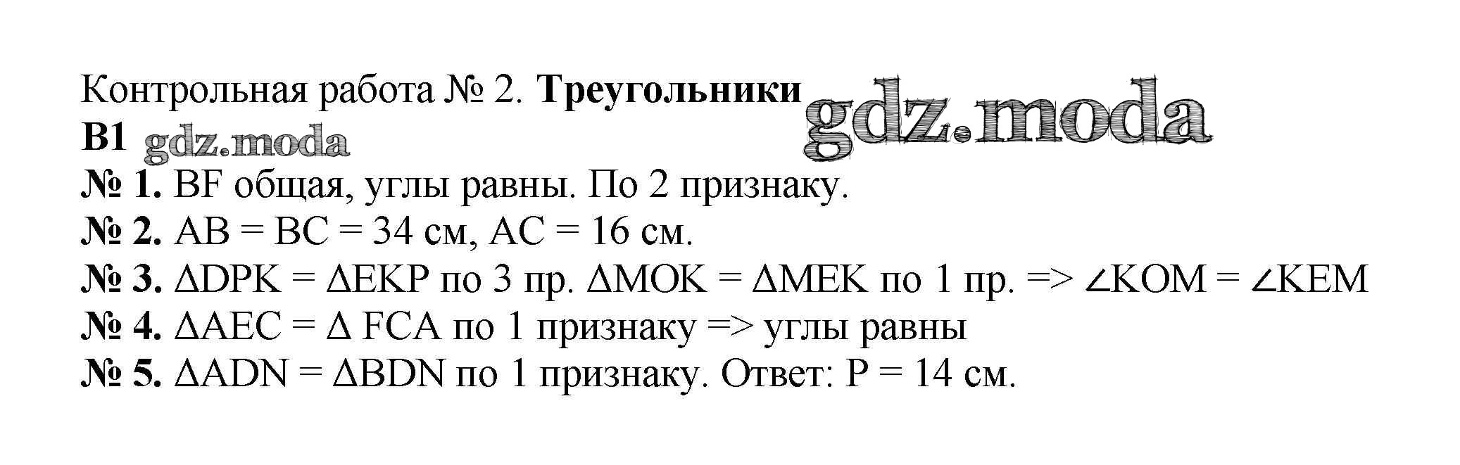 ОТВЕТ на задание № КР-2 Дидактические материалы по Геометрии 7 класс Мерзляк Алгоритм успеха